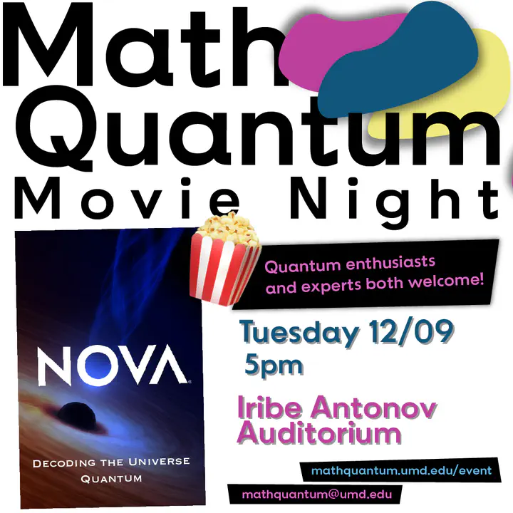 Join us for a movie, snacks and discussion, while meeting others at UMD interested in quantum computing! Both quantum enthusiasts and quantum experts will enjoy exploring how quantum is presented in popular media.